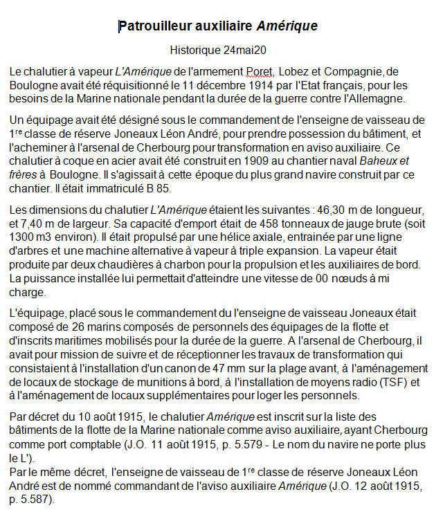 le chalutier se nommait "L'Amérique". Après transformation en aviso,