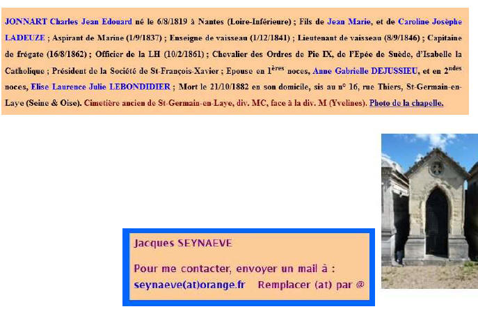 Atlantique) - Décédé le 21 octobre 1882 à SAINT GERMAIN en LAYE