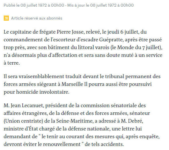 petit bateau. Le commandant fut relevé de ses fonctions et quitta le
