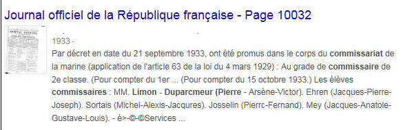 Élève commissaire le 15 octobre 1932