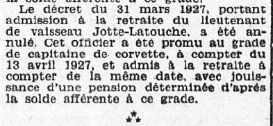 Le 21 novembre 1920, Commandant le