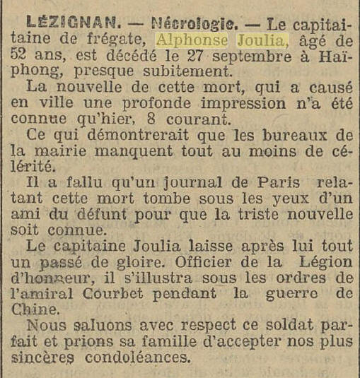 CORBIÈRES (Aude) - Décédé le 27 septembre 1905 à HAÏPHONG