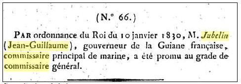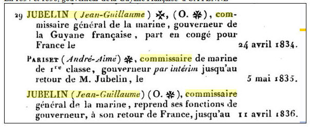 En 1834 et 1836, gouverneur de la Guyane Française à CAYENNE