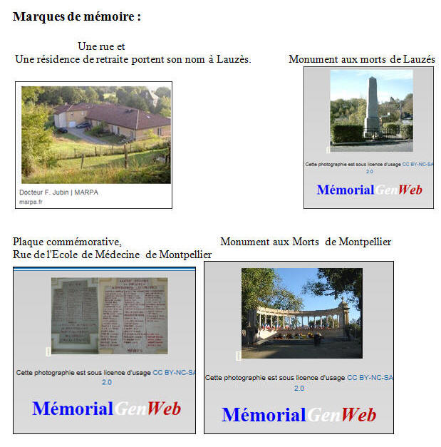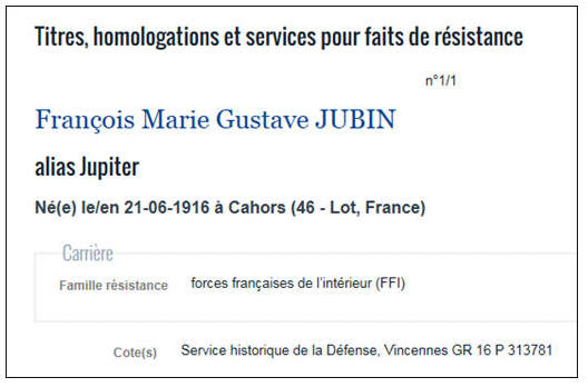 SOURCE : Françoise Jubin, bio Jubin, Les Amis de la Fondation de la