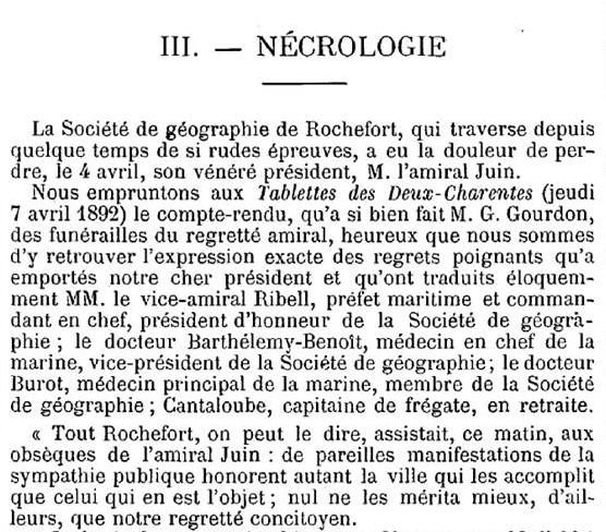 (Charente Maritime) - Décédé le 4 avril 1892 et inhumé au cimetière