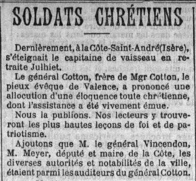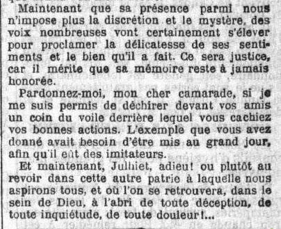 - Décédé le 18 aout 1898 à LA CÔTE SAINT ANDRE (Isère)