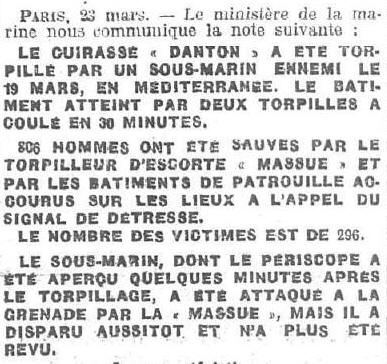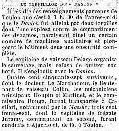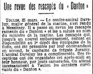 sur le cuirassé "DANTON", il figure parmi les survivants du