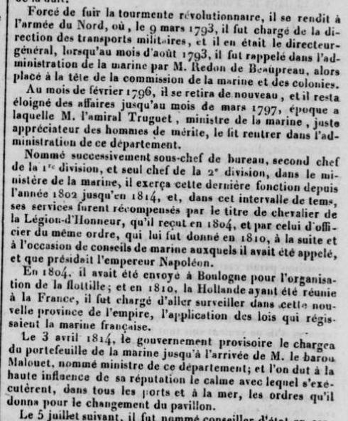 Avril 1817 : il est membre du Comité de la Marine au Conseil d’Etat.