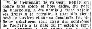 réserve le 1er octobre 1927; port CHERBOURG.