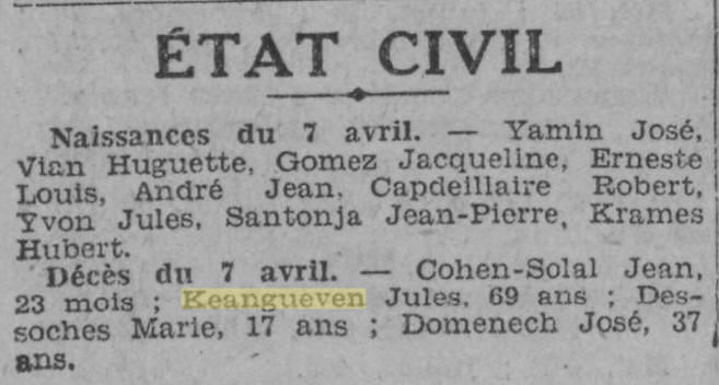 Décédé le 7 avril 1932 à ALGER (Algérie)