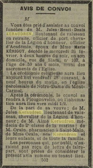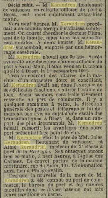 Né le 24 octobre 1836 à CAMARET-su-MER (Finistère) - Décédé le 26