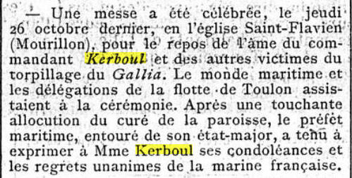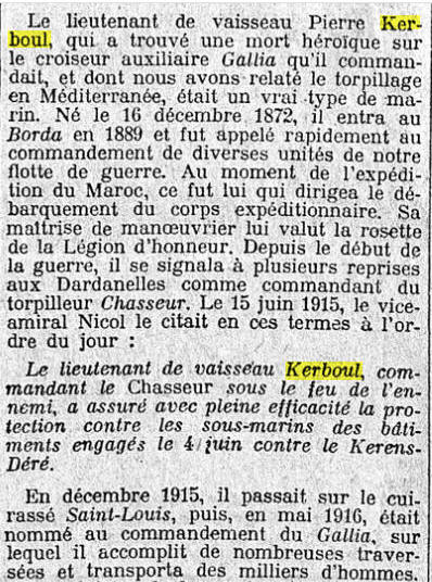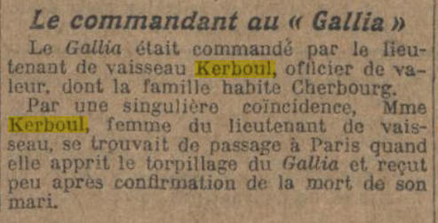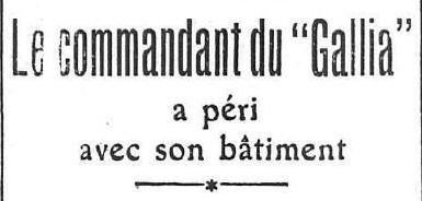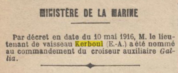 Commandant le croiseur auxiliaire "GALLIA", transport de troupes, il