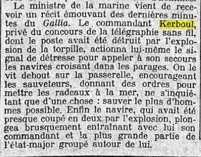 d'épaves. Le Gallia a coulé à 17 h 57. J'ai nagé alors vers un