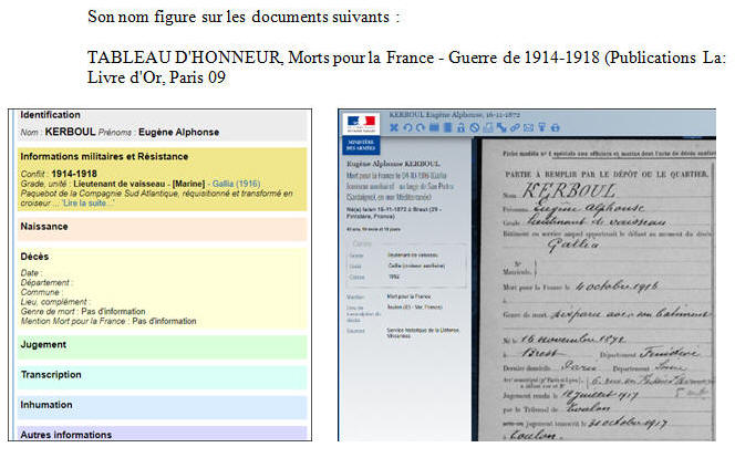 (Finistère) - Décédé le 4 octobre 1916 en mer, au large de l'Ile