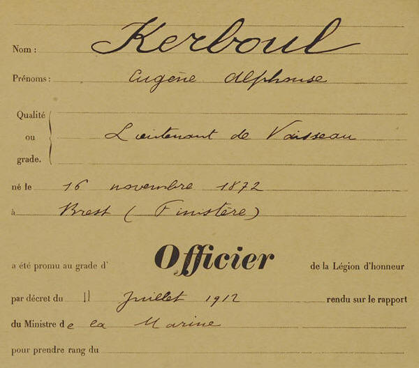 Commandant le torpilleur "CHASSEUR", 3ème escadrille, 1ère Armée