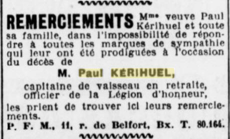 à QUIMPERLÉ (Finistère) - Décédé en mai 1939