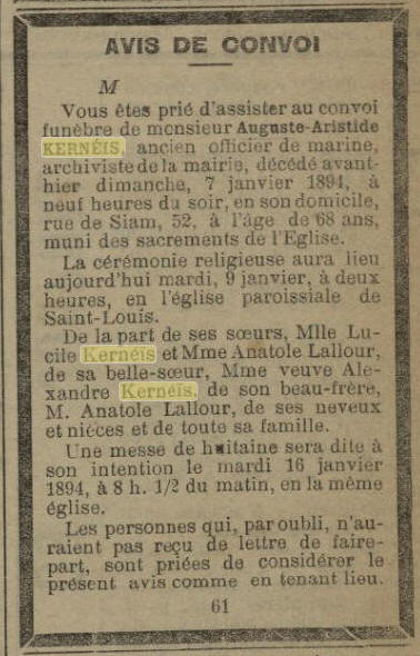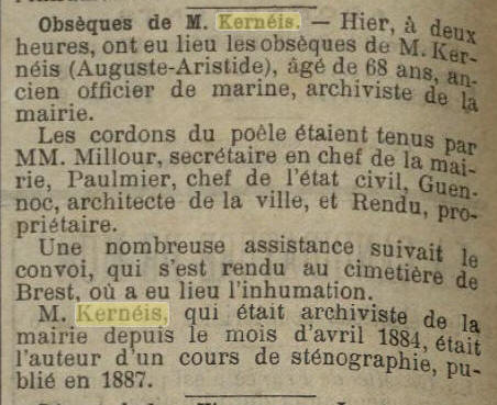 (Finistère) - Décédé le 7 janvier 1894 à BREST (Finistère)