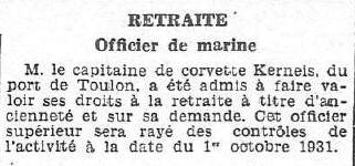 Par décret du 6 juillet 1939, promu Capitaine de frégate de réserve.