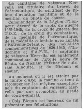 Kervella, le lieutenant de vaisseau Baron (coiffe bleu marine),