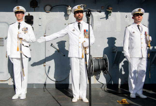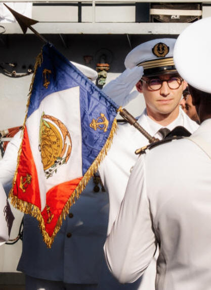 cours de la cérémonie, organisée à bord de l’Arago, une revue de