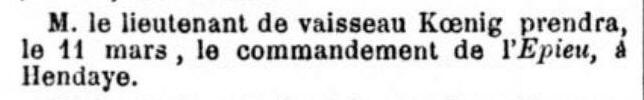 d'ordonnance auprès du Ministre de la Marine et des Colonies,