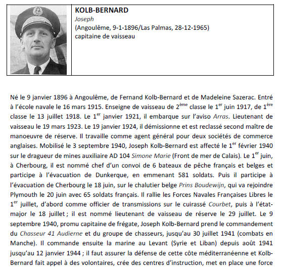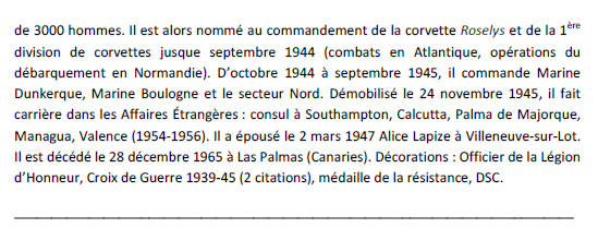 Cet Officier s'engage dans les F.N.F.L. en juillet 1940.