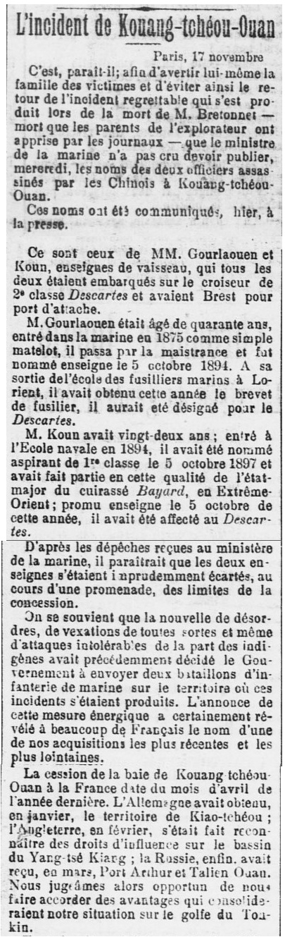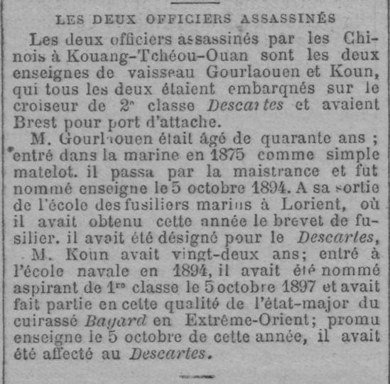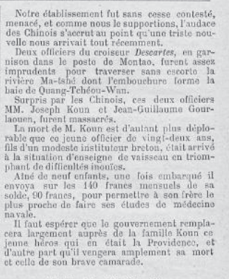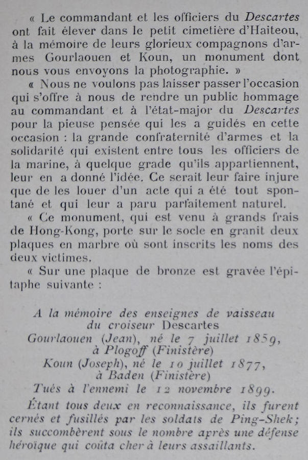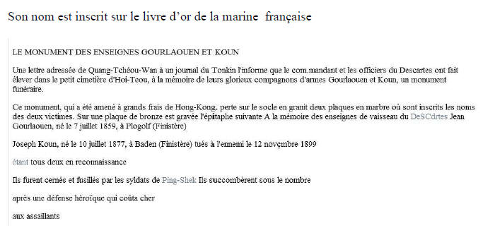 (Morbihan) - Tué le 12 novembre 1899 à KWANG-FOU-TCHÉOU; CHINE.
