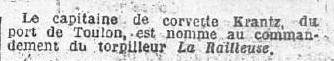 Commandant le torpilleur "RAILLEUSE".