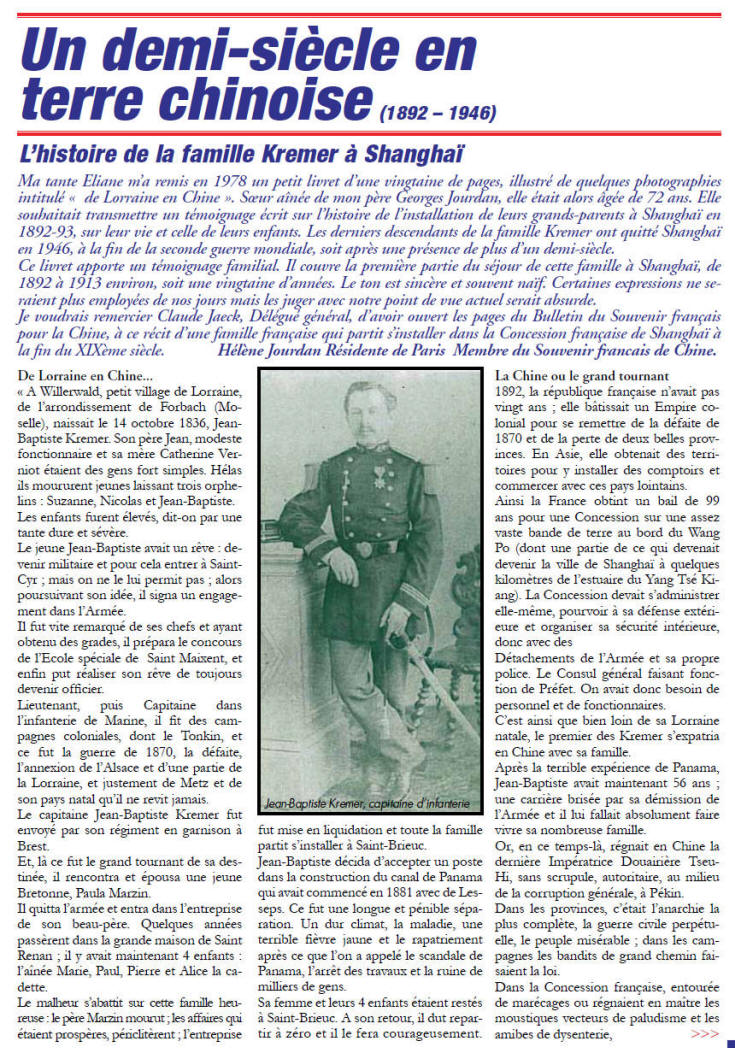 française à Shangai (Chine) Grade demandé : chevalier, date(s) du