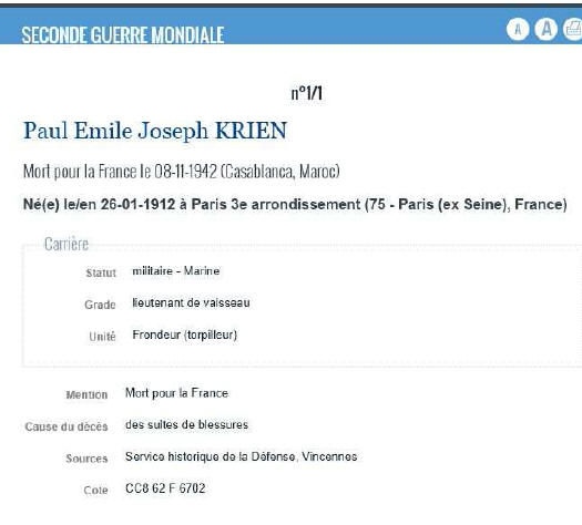 PARIS IIIème (Seine) - Décédé le 8 novembre 1942 à CASABLANCA,