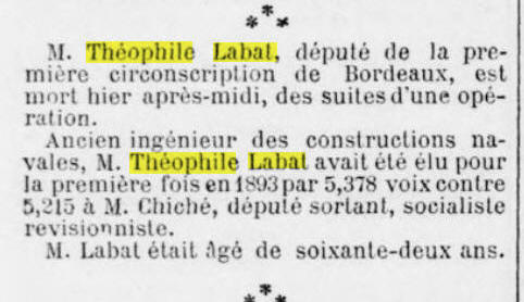 Gironde (troisième République). Théophile Labat est solidement