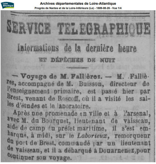 d'Honneur le 29 juin 1886, étant sur le "MESSAGER".