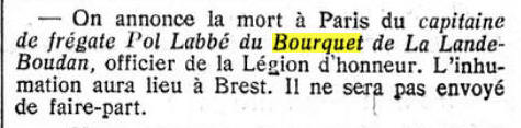 Pol Adolphe Marie LABBÉ du BOURQUET de La LANDE-BOUDAN