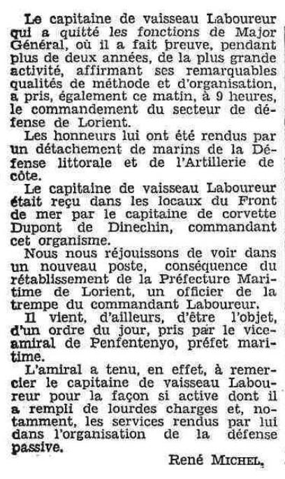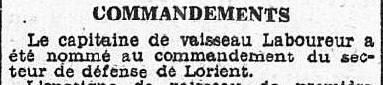 1931, Chef d'État-Major de l'Arrondissement de LORIENT.