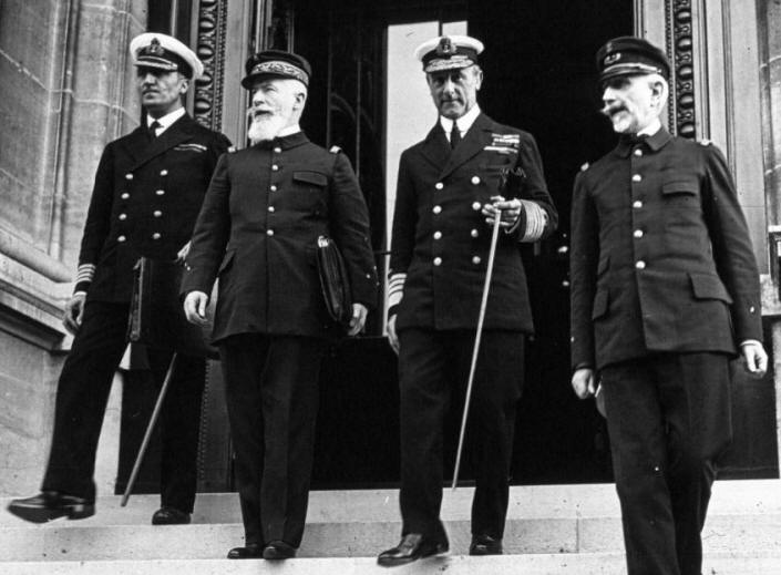 Foch, amiral Lacaze, général Pétain, conférence des alliés - Source