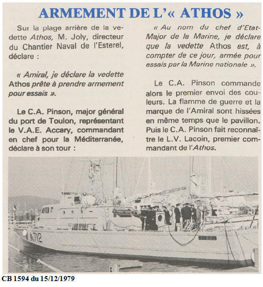 la division des vedettes de l'Adour et « l'Athos », en 1979-1980.
