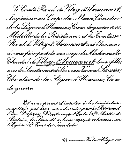 VITRY d'AVAUCOURT le 3 juin 1949 à PARIS XVIe
