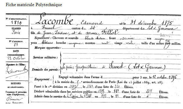 Élève de l'École polytechnique en 1896, opte pour la Marine.
