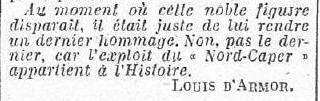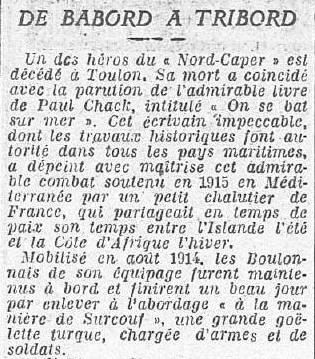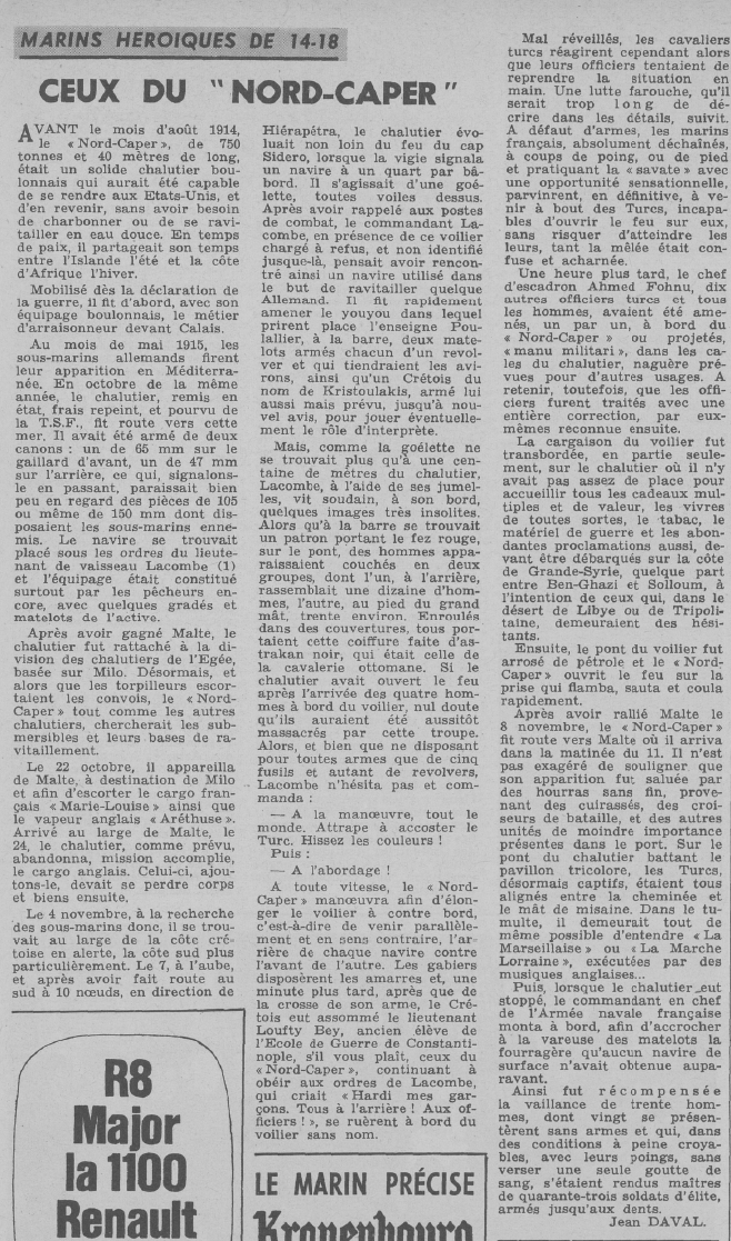 commande l'aviso auxiliaire "NORD-CAPER", et se distingue.
