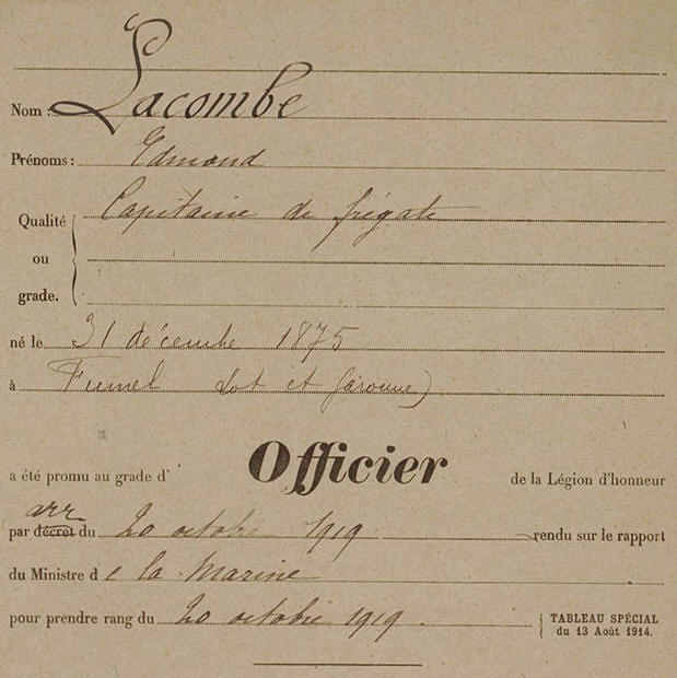 sous les ordres du lieutenant de vaisseau Lacombe, qui s'empara à