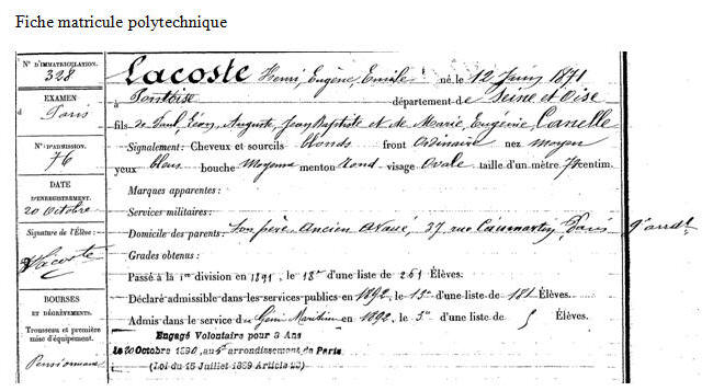 Élève de l'École polytechnique le 1er novembre 1890; opte pour le