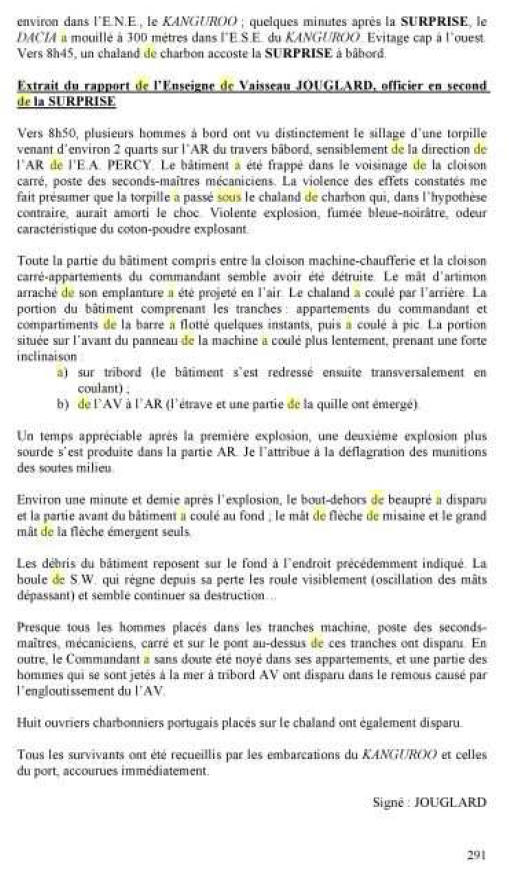 Extrait du rapport de l’Enseigne de Vaisseau JOUGLARD, officier en