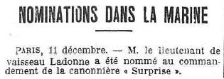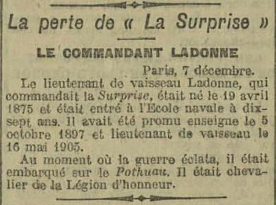 La SURPRISE, commandée par le Lieutenant de Vaisseau LADONNE, avait