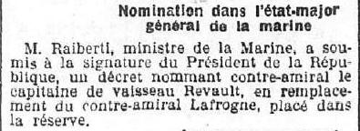 sur le cuirassé "MIRABEAU", Chef d'État-Major auprès du