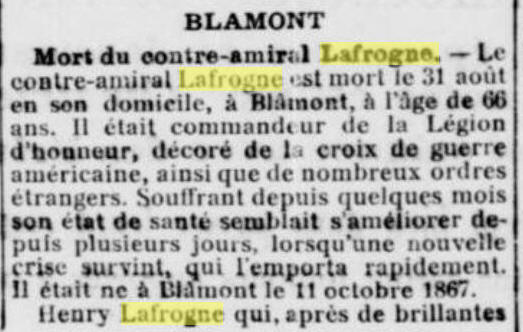 BLÂMONT (Meurthe-et-Moselle) - Décédé le 31 août 1933 à BLÂMONT