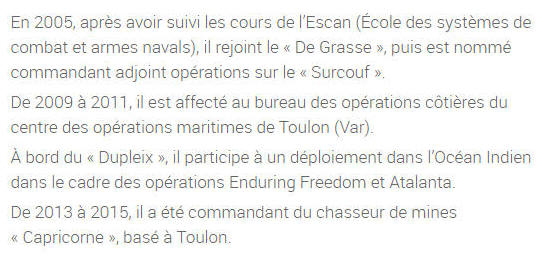 équipage puis commandant adjoint opérations de la frégate Dupleix,