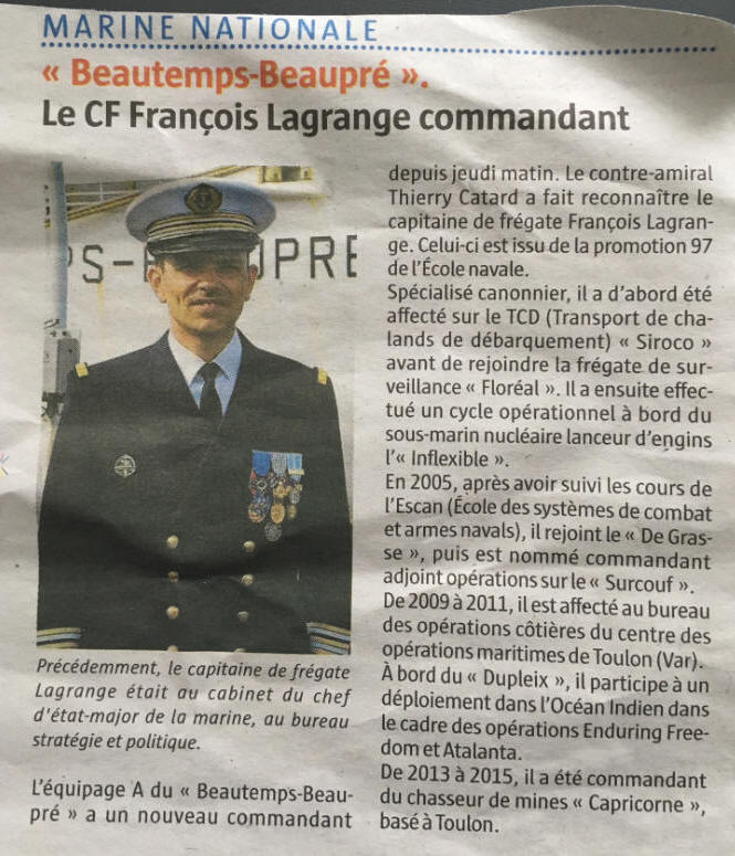 prend le commandement de l'équipage A du Beautemps Beaupré