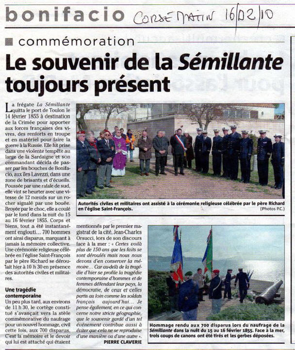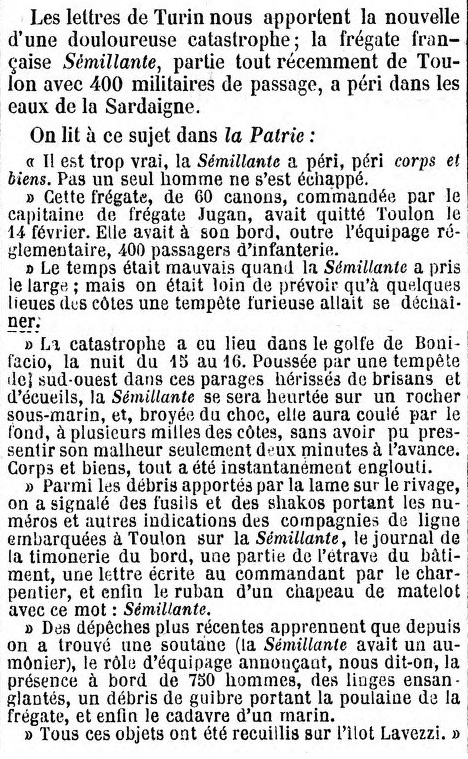 la frégate "SÉMILLANTE", naufragée dans les Bouches de BONIFACIO et