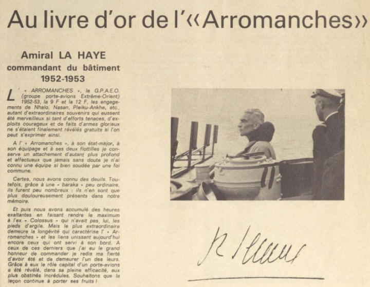 Sur le porte avions "ARROMANCHES", en janvier 1953