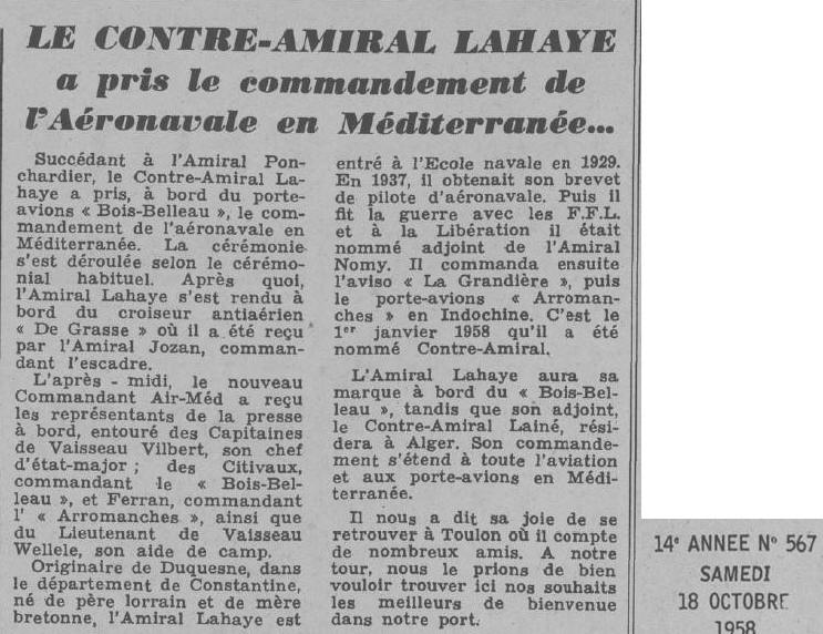 Probablement Cdt Ecole Navale (1955-57) accompagné par futur VAE